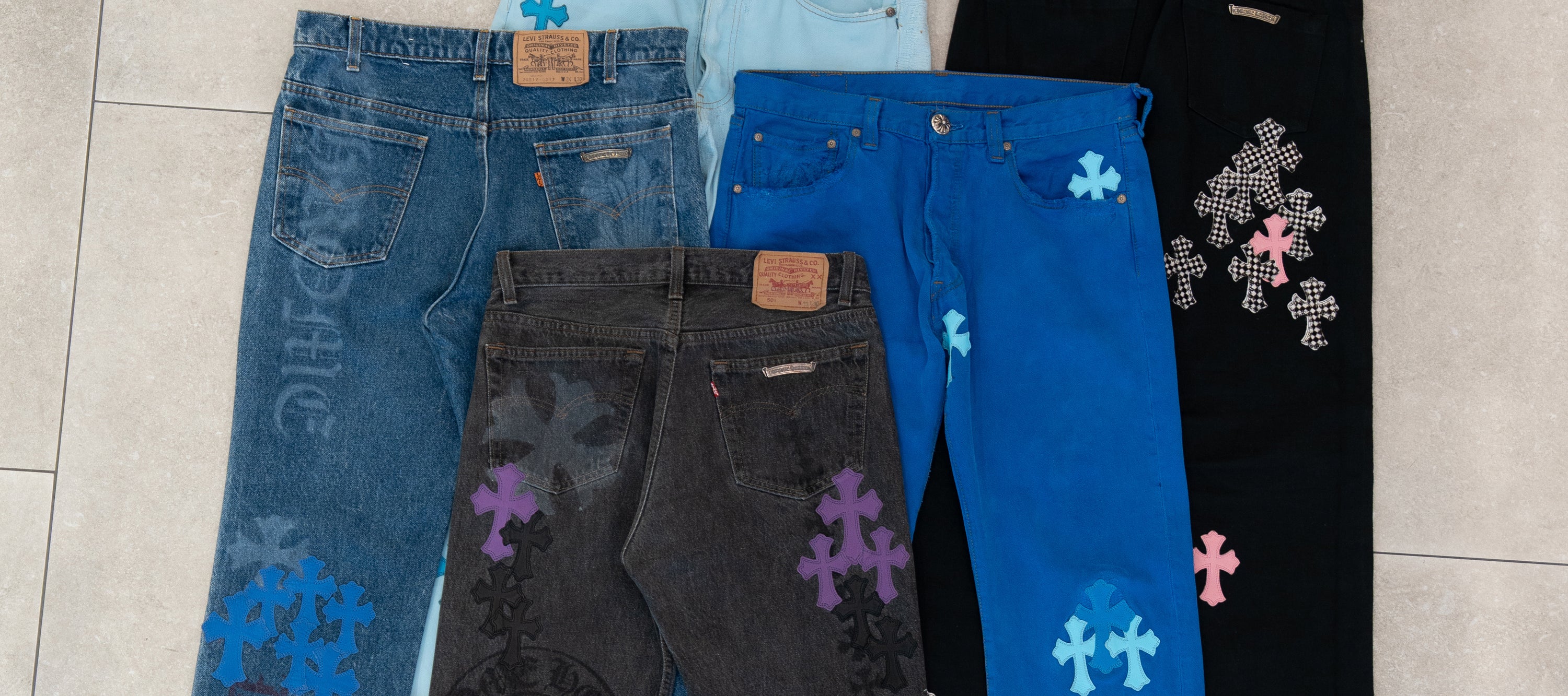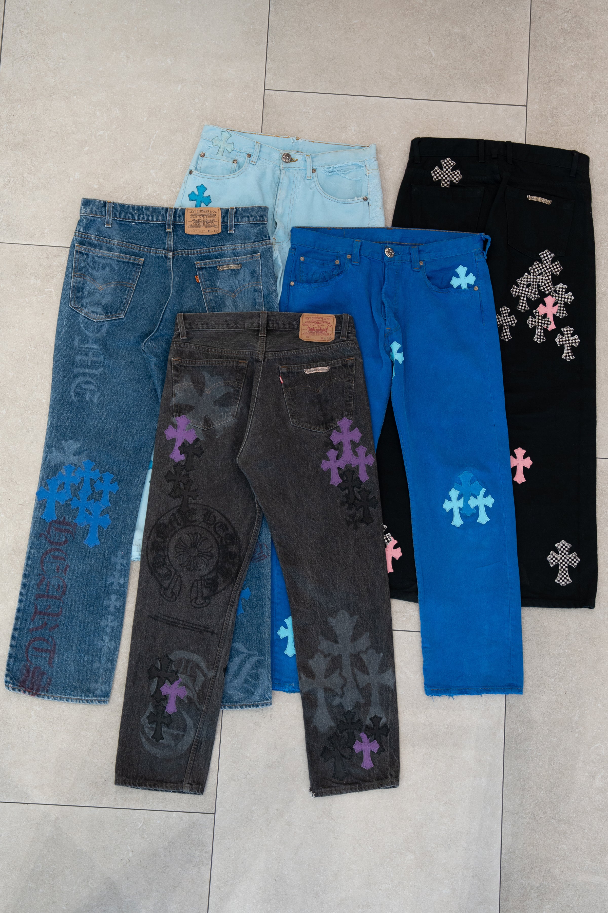 Sold outLondon Exclusive Levi's 501 Blue & Light Blue Cross Patch Jeans Blue